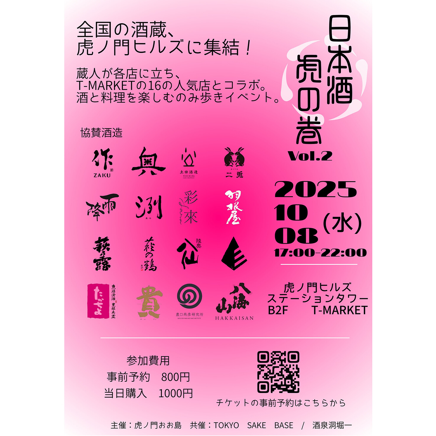 - 2025年7月に第一回が開催され大好評を博し、さまざまな名店が集まるT-MARKETで厳選された日本酒を味わえるイベントです。今回はT-MARKETの参加店舗15店舗に日本酒の蔵を組み合わせ、各店舗で日本酒と料理を楽しんでいただけます。